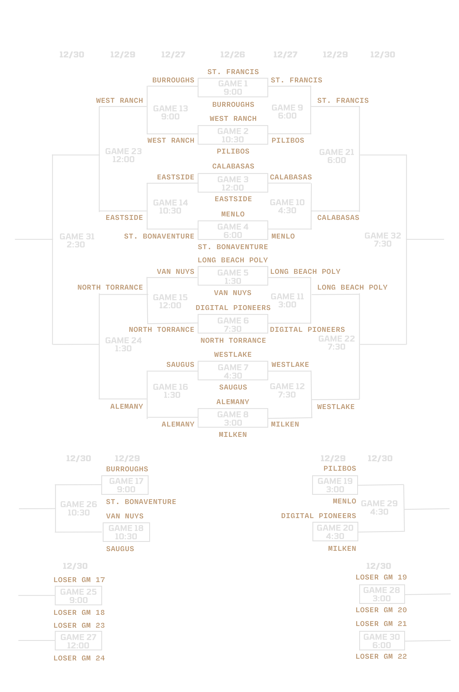 * Milken is a Jewish School and MUST play at 7:30pm on Saturday